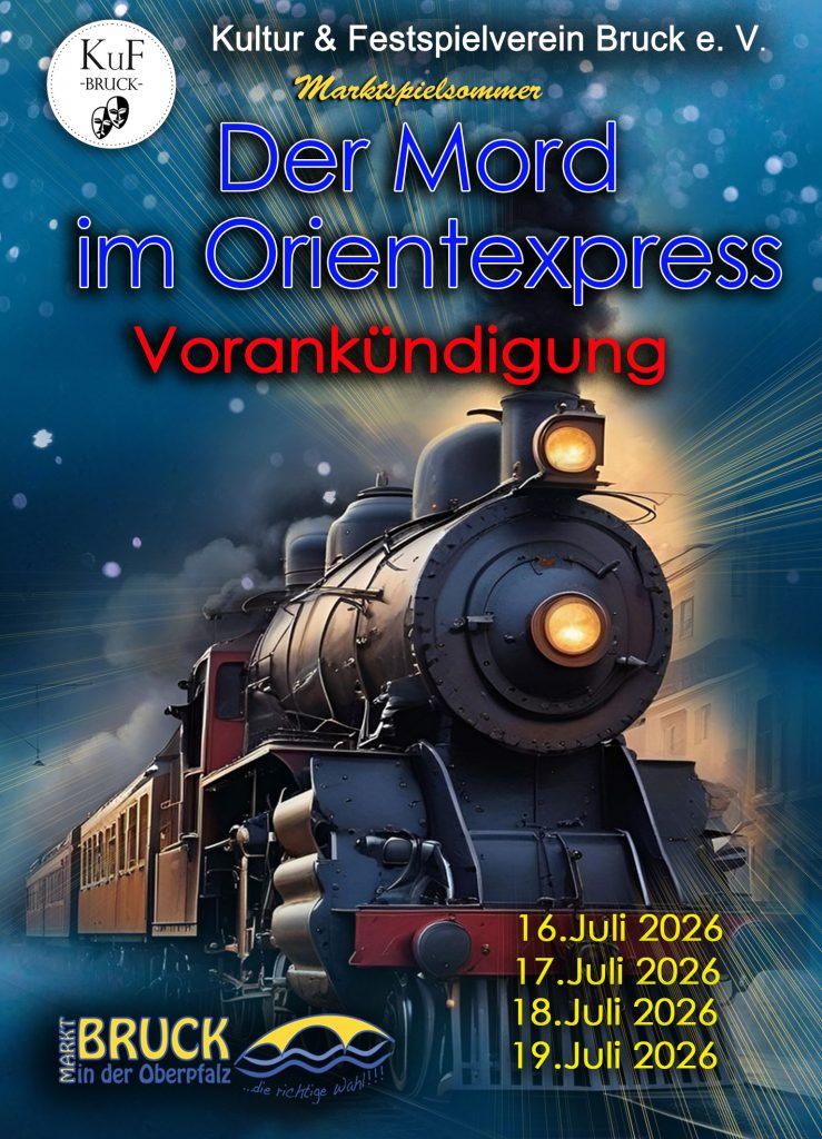 Der Kultur- und Festspielverein Bruck bringt mit „Der Mord im Orientexpress“ einen der berühmtesten Kriminalfälle der Theatergeschichte auf die Bühne. Basierend auf dem weltbekannten Roman von Agatha Christie entfaltet sich ein spannungsgeladenes Stück voller überraschender Wendungen, scharfsinniger Dialoge und geheimnisvoller Charaktere.