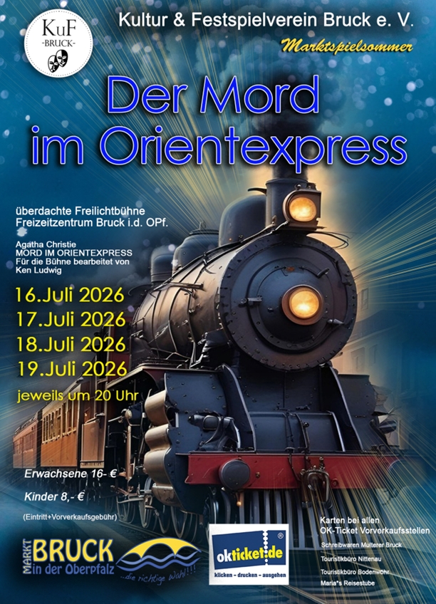 Der Kultur- und Festspielverein Bruck bringt mit „Der Mord im Orientexpress“ einen der berühmtesten Kriminalfälle der Theatergeschichte auf die Bühne. Basierend auf dem weltbekannten Roman von Agatha Christie entfaltet sich ein spannungsgeladenes Stück voller überraschender Wendungen, scharfsinniger Dialoge und geheimnisvoller Charaktere.